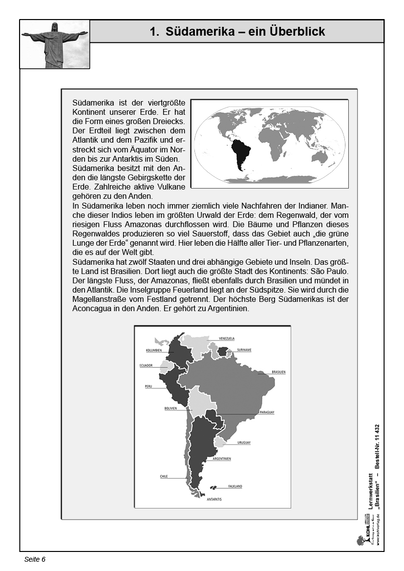 Dieser Band gibt interessante Einblicke in erfreuliche, aber auch in weniger schöne Themen, die das größte Land Südamerikas betreffen. Karneval in Rio, der Amazonas, große, reiche Industriewerke und arme Bauern - Brasilien zeigt viele Gegensätze. Geschichte, Geografie, Wirtschaft und Kultur, selbstverständlich Pele und der Fußball - es gibt viel Spannendes zu erfahren und zu erforschen. Die Schüler bekommen hier die Gelegenheit, sich einen umfassenden Überblick über ein faszinierendes und vielseitiges Land zu verschaffen.