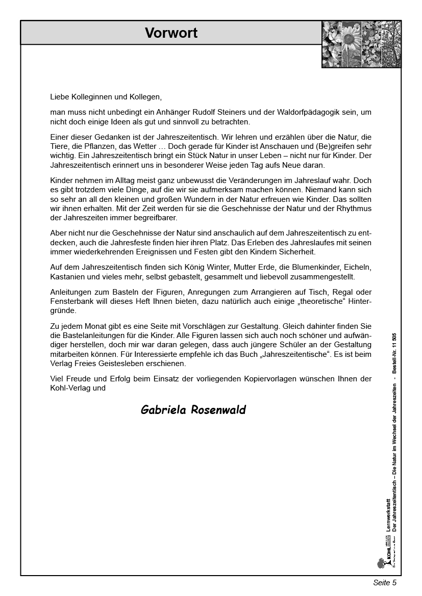 Dieses Arbeitsheft ist vorgesehen zum Einsatz ab 4 Jahren im Kindergarten, in der Vorschule sowie in der Grundschule in den Klassen 1 bis 4. Die Arbeitsblätter enthalten zahlreiche Ideen und Bastelvorlagen durch den gesamten Jahreslauf. Hier wird gestaltet, gemalt, gebastelt, geklebt und dekoriert - ganz im Wechsel der Jahreszeiten .....