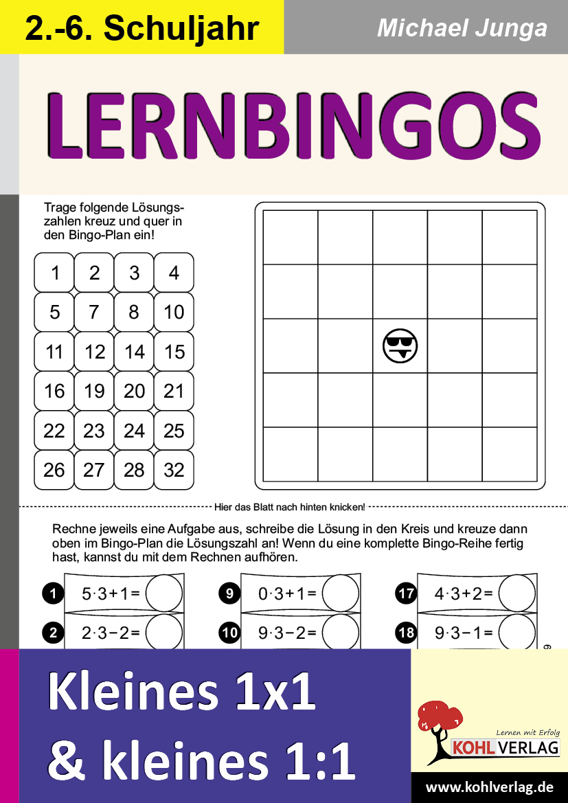 Im Band befinden sich 20 verschiedene Vorlagen für das 1x1 und 20 Vorlagen für das 1:1. Die Materialien stärken die Kopfrechenfähigkeit und das allgemeine Konzentrationsvermögen. Die klar strukturierten Kopiervorlagen sind mit ausführlichen Lösungen ausgestattet. Mit diesen Lernbingos ist es sogar möglich, dass ein Kind ganz alleine und nur für sich Bingo spielt!