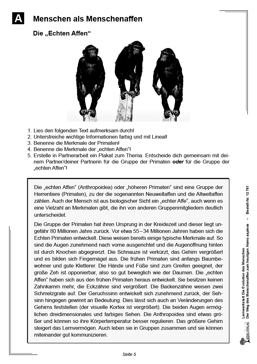 Mehr als 45 Jahre ist es her, als in Äthiopien ein fossiles Teilskelett gefunden wurde, das nach einem Beatles-Song den Namen „Lucy“ erhielt. Mit einem Alter von 3,2 Mio. Jahren ist Lucy ein wichtiger Beleg für die Menschheitsgeschichte auf dem Weg vom Urzeitaffen bis zum modernen Menschen. Neben Lucy, einer Vertreterin der Gattung Australopithecus, gab es noch weitere Stationen in der Evolution des Menschen. Diese Lernwerkstatt trägt den Stand der Forschung zusammen und präsentiert anschaulich über welche interessanten Wege sich die Gattung Homo entwickelt hat. Aus dem Inhalt: Out-of-Africa-Theorie; Homo habilis; Homo erectus; Homo neanderthalensis u.v.m.