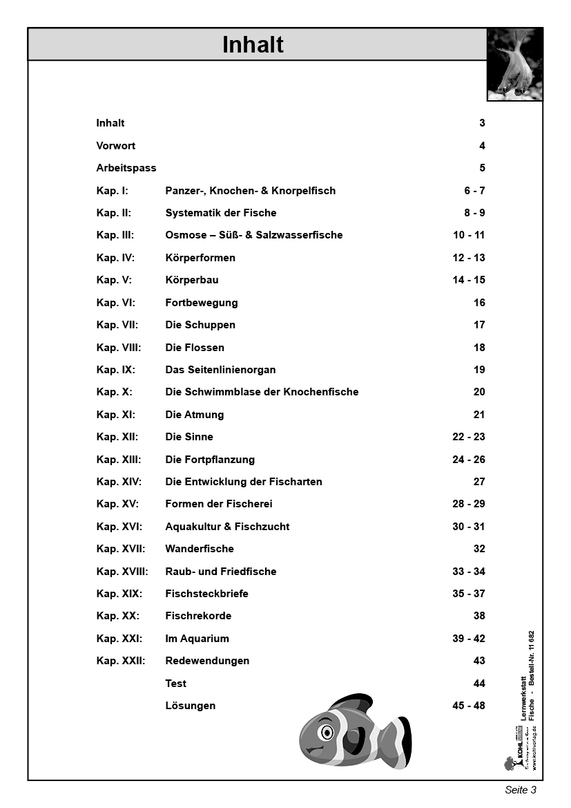 Den Goldfisch und das Fischstäbchen kennen alle Schüler. Doch wie leben die Fische in ihrem Element, dem Wasser? Wie atmen sie, wie vermehren sie sich? Was sind Raubfische und was Friedfische? Warum hat der Fisch Schuppen, was ist der Unterschied zwischen Salzwasser und Süßwasserfisch?