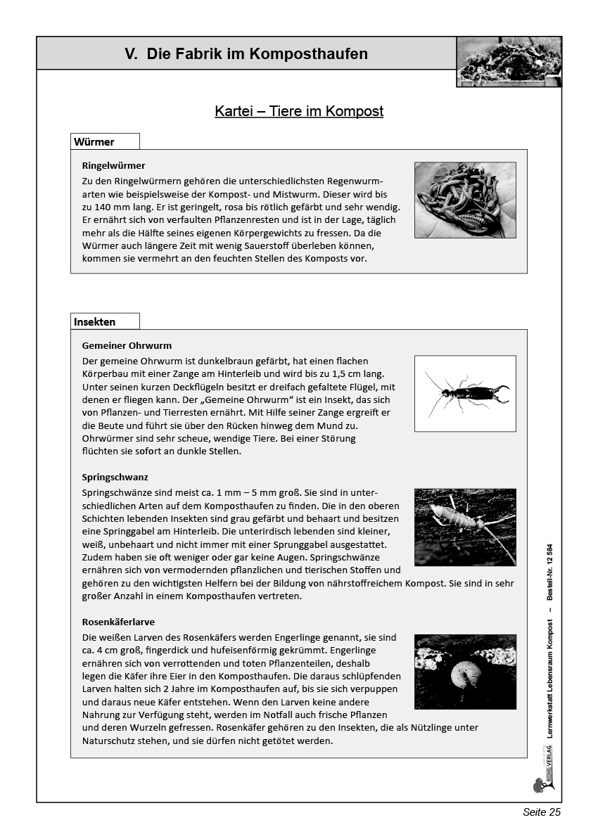 - Bestimmungsbuch „Kleintiere im Kompost“