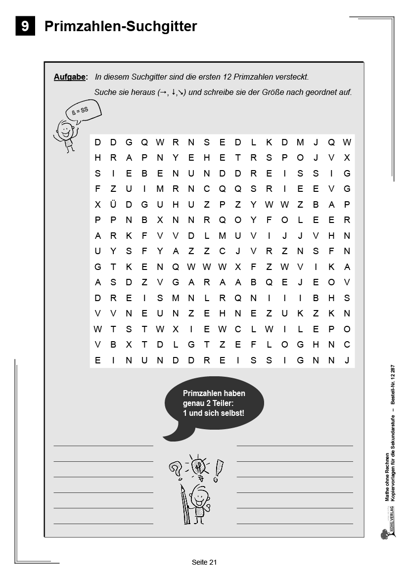 Die Mathe-Rätsel begeistern die Schüler mit herausfordernder Denkarbeit von Mathe-Begriffen bis zu geometrischen Konstruktionen. Pfiffige Rätselformen fördern die Motivation, die Lösungen auszuarbeiten. Das Inhaltsverzeichnis bietet einen schnellen Zugriff und erleichtert Ihnen die Unterrichtsvorbereitung. Es informiert über die Titel und Themen, Rätselformen und deren Verwendung. Verschiedene Schwierigkeitsgrade unterstützen sie bei der Vorbereitung für Ihren Unterricht und die notwendige Differenzierung. Alle Rätsel sind praxiserprobt und für eine Selbstkontrolle ausgelegt. Damit sind Sie bestens gerüstet für den Einstieg in ein neues Thema, die Wiederholung, Erarbeitung, Übung, Bereitstellung von Hausaufgaben oder für sinnvolle Vertretungsstunden.