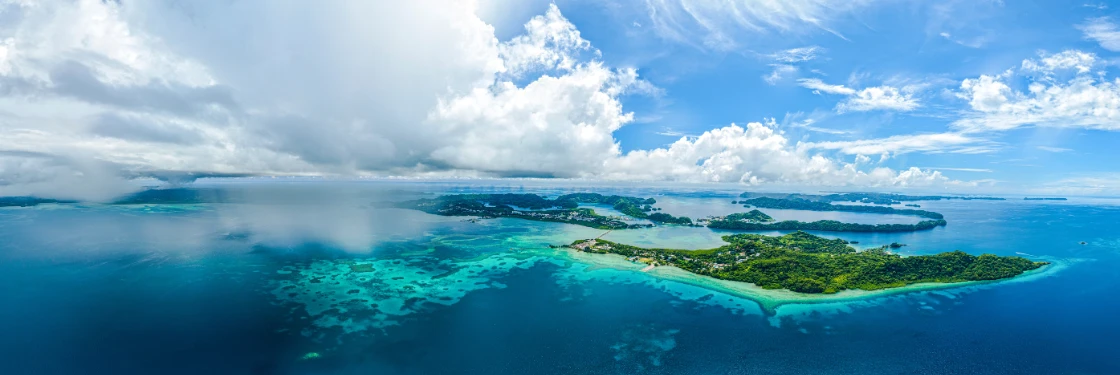 Durch die Sonne verdunstet das Wasser im Meer. Deshalb steigt Wasser unsichtbar fein in den Himmel hinauf.